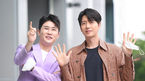 [OSEN=조은정 기자] 26일 오전 서울 마포구 상암 MBC 주차장에서 MBC '꼰대인턴' 방구석 팬미팅 출근길 행사가 열렸다.가수 영탁, 배우 박해진이 포즈를 취하며 방송국에 들어서고 있다./cej@osen.co.kr