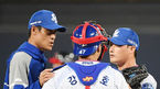 [OSEN=대구, 민경훈 기자] 4일 오후 대구 삼성 라이온즈 파크에서 ‘2020 신한은행 SOL KBO리그’ 삼성 라이온즈와와 LG 트윈스의 경기가 열렸다.9회초 2사 주자 만루 LG 이천웅이 타석에서 삼성 오승환이 정현욱 코치와 얘기를