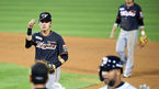 [OSEN=잠실, 지형준 기자] 4일 오후 서울 잠실야구장에서 ‘2020 신한은행 SOL KBO리그’ 두산 베어스와 한화 이글스의 경기가 열렸다.9회초 무사에서 한화 강경학이 두산 페르난데스의 1루땅볼에 라인드라이브로 처리했다고 1