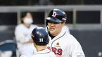 [OSEN=잠실, 조은정 기자] 7일 오후 서울 송파구 잠실야구장에서 ‘2020신한은행SOLKBO리그’ 두산 베어스와 LG 트윈스의 경기가 열렸다.4회말 1사 2,3루 두산 박세혁의 희생플라이에 동점 득점을 올린 오재일이 정수빈과 기뻐하