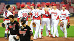 [OSEN=광주, 최규한 기자] 9일 광주-기아 챔피언스필드에서 '2020 신한은행 SOL KBO리그' KIA 타이거즈와 KT 위즈의 경기가 열렸다.8회말 1사 만루 상황 KIA 나지완이 좌중간 만루홈런을 날리고 홈을 밟은 뒤 터커-박찬호-최형우와 인사