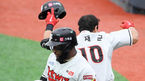 [OSEN=수원, 민경훈 기자] 26일 오후 수원 KT위즈파크에서 '2020 신한은행 SOL KBO리그' KT 위즈와 NC 다이노스의 경기가 열렸다.1회말 1사 KT 황재균이 NC 선발투수 구창모를 상대로 선취 솔로 홈런을 때려낸 뒤 덕아웃에서 하이파이브를