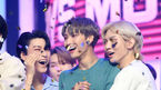 [OSEN=고양, 조은정 기자] 5일 오후 경기도 고양시 일산동 호수로 MBC드림센터에서 MBC M '쇼 챔피언(Show Champion)' 생방송이 진행됐다.쇼 챔피언 생방송에서 그룹 에이티즈 최산, 박성화, 강여상이 1위 호명에 놀라고 있다. /cej@osen.co.kr
