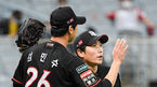 [OSEN=고척,박준형 기자] 5일 오후 서울 고척스카이돔에서 KBO리그 키움 히어로즈와 KT 위즈의 경기가 진행됐다.3회말 실책성 수비를 펼친 KT 황재균이 김민수에게 미안함을 표시하고 있다. ./ soul1014@osen.co.kr
