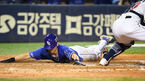 [OSEN=잠실,박준형 기자] 6일 오후 서울 잠실구장에서 KBO리그 두산 베어스와 삼성 라이온즈의 경기가 진행됐다.4회초 1사 2루 삼성 박계범의 1타점 적시타때 2루 주자 김지찬이 홈쇄도해 세이프되고 있다. / soul1014@osen.co.kr