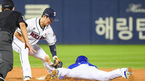 [OSEN=잠실,박준형 기자] 6일 오후 서울 잠실구장에서 KBO리그 두산 베어스와 삼성 라이온즈의 경기가 진행됐다.4회초 1사 3루 삼성 박해민의 내야땅볼때 오재일 1루수가 타자 박해민을 터치아웃시키고 있다. / soul1014@osen.co.kr