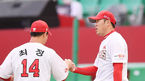 [OSEN=인천, 민경훈 기자] 6일 오후 인천 SK행복드림구장에서 ‘2020 신한은행 SOL KBO리그’ SK 와이번스와 롯데 자이언츠의 경기가 열렸다.1회초를 마친 SK 선발 김주한이 덕아웃으로 들어가며 최정과 하이파이브를 하고 있다.