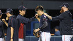 [OSEN=고척, 민경훈 기자] 8일 오후 서울 고척스카이돔에서 2020 KBO리그 키움 히어로즈와 LG 트윈스의 경기가 열릴 예정인 가운데 그라운드 훈련이 진행됐다.LG 오지환이 그라운드 위에서 몸을 풀며 환하게 웃고 있다. /rumi@osen.co.kr