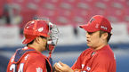 [OSEN=잠실, 민경훈 기자] 19일 오후 서울 잠실구장에서 '2020 신한은행 SOL KBO리그' LG 트윈스와 KIA 타이거즈의 경기가 열렸다.2회말 2사 주자 1,2루 LG 장준원에게 볼넷을 내준 KIA 선발 이민우가 김민식과 얘기를 나누고 있다./ rumi@osen