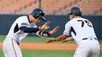 [OSEN=목동, 김성락 기자] 19일 오후 서울 양천구 목동야구장에서 ’54회 대통령배 전국고교야구대회’ 대구 상원고와 야탑고의 8강전이 열렸다.1회말 2사 3루 상원고 김주형이 1타점 적시타를 날린 뒤 세레모니를 하고 있다./