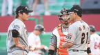 [OSEN=인천, 곽영래 기자] 19일 오후 인천 SK행복드림구장에서 '2020 신한은행 SOL KBO리그' SK 와이번스와 한화 이글스의 경기가 열렸다.1회말 무사 만루 한화 송진우 코치가 마운드에 올라 박주홍과 이야기를 나누고 있다. /youngrae@osen.