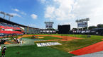 [OSEN=잠실, 민경훈 기자] 19일 오후 서울 잠실구장에서 '2020 신한은행 SOL KBO리그' LG 트윈스와 KIA 타이거즈의 경기가 열릴 예정인 가운데 경기 전 그라운드 훈련이 진행됐다.폭염특보가 발효 중인 가운데 그라운드 위에서 LG 정근우