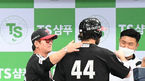 [OSEN=고척, 민경훈 기자] 20일 오후 서울 고척스카이돔에서'2020 신한은행 SOL KBO리그'키움 히어로즈와 LG 트윈스의 경기가 열렸다.8회초 2사 LG 라모스가 우월 재역전 솔로홈런을 날린 후 덕아웃에서 류중일 감독의 축하를 받고 있
