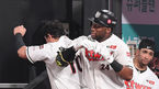 [OSEN=수원 , 곽영래 기자] 24일 오후 수원 KT위즈파크에서 '2020 신한은행 SOL KBO리그' KT 위즈와 NC 다이노스의 경기가 열렸다.5회말 1사 KT 로하스가 솔로 홈런을 때린 뒤 황재균과 기뻐하고 있다. /youngrae@osen.co.kr