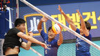 [OSEN=제천, 민경훈 기자] 25일 오후 충북 제천시 제천체육관에서 2020 제천·MG새마을금고컵 프로배구대회 우리카드와 국군체육부대의(상무)의 경기가 열렸다.2세트 상무 안우재의 강타를 우리카드 하현용이 블로킹하고 있다.