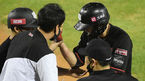 [OSEN=잠실,박준형 기자] 27일 서울 잠실구장에서 KBO리그 LG 트윈스와 KT 위즈의 경기가 진행됐다.8회초 KT 심우준이 몸에 맞는 공으로 교체되고 있다. / soul1014@osen.co.kr