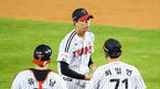 [OSEN=잠실,박준형 기자] 27일 서울 잠실구장에서 KBO리그 LG 트윈스와 KT 위즈의 경기가 진행됐다.8회초 LG 정우영 투수가 세타자 연속 사사구를 허용한뒤 교체되고 있다. / soul1014@osen.co.kr