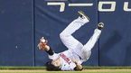 [OSEN=잠실, 조은정 기자]27일 오후 서울 송파구 잠실야구장에서 ‘2020신한은행SOLKBO리그’ LG 트윈스와 KT위즈의 경기가 열렸다.2회말 2사 1루 LG 홍창기의 좌전 안타 타구를 KT 유격수 심우준이 따라가던 중 미끄러지고 있다.
