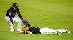 [OSEN=잠실,박준형 기자] 27일 서울 잠실구장에서 KBO리그 LG 트윈스와 KT 위즈의 경기가 진행됐다.2회말 2사 1루 LG 홍창기의 안타때 KT 심우준 유격수가 몸을 던지며 포구 시도하고 있다. / soul1014@osen.co.kr