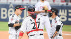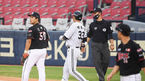 [OSEN=잠실,박준형 기자] 27일 서울 잠실구장에서 KBO리그 LG 트윈스와 KT 위즈의 경기가 진행됐다.1회초 LG 선발투수 김윤식이 두타자 연속 볼넷을 허용한뒤 최일언 투수 코치와 이야기를 하고 있다. / soul1014@osen.co.kr