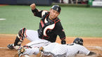 [OSEN=잠실,박준형 기자] 27일 서울 잠실구장에서 KBO리그 LG 트윈스와 KT 위즈의 경기가 진행됐다.1회말 1사 1,3루 LG 이형종의 삼진때 KT 장성우 포수가 더블스틸로 홈쇄도하는 3루 주자 오지환을 태그아웃시키고 있다./ soul1014@osen.co.
