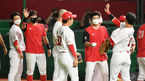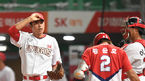 [OSEN=인천, 곽영래 기자] 27일 오후 인천 SK행복드림구장에서 '2020 신한은행 SOL KBO리그' SK 와이번스와 KIA 타이거즈의 경기가 열렸다.9회초 2사 2루 SK 이태양이 KIA 박찬호에게 안타를 허용한 뒤 이흥련과 이야기를 나누고 있다. /youn