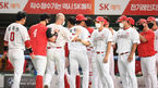 [OSEN=인천, 곽영래 기자] SK가 갈길 바쁜 KIA를 잡고 KIA전 3연패에서 벗어났다.SK는 27일 인천 SK행복드림구장에서 열린 KIA와의 경기에서 10-4로 승리했다. 선발 투수 문승원은 7이닝 동안 4피안타 3사사구 9탈삼진 2실점으로 호투하며