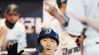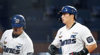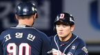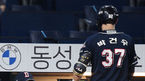 [OSEN=창원, 민경훈 기자] 28일 오후 창원 NC파크에서 ‘2020 신한은행 SOL KBO리그’ NC 다이노스와 두산 베어스의 경기가 열렸다.4회초 두산 선두타자 박건우가 중월 솔로홈런을 날린 후 덕아웃에서 김태형 감독의 축하를 받고
