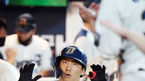 [OSEN=창원, 민경훈 기자] 28일 오후 창원 NC파크에서 ‘2020 신한은행 SOL KBO리그’ NC 다이노스와 두산 베어스의 경기가 열렸다.4회말 NC 선두타자로 나온 나성범이 우월 솔로홈런을 날린 후 덕아웃에서 동료들과 비접촉 하이