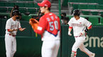 [OSEN=인천,박준형 기자] 28일 오후 인천SK행복드림구장에서 KBO리그 SK 와이번스와 KIA 타이거즈의 경기가 진행됐다.8회말 2사 3루 SK 오태곤이 2점 홈런을 날린뒤 홈을 밟고 있다. / soul1014@osen.co.kr