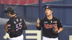 [OSEN=잠실, 곽영래 기자] 28일 오후 서울 잠실야구장에서 '2020 신한은행 SOL KBO리그' LG 트윈스와 KT 위즈의 경기가 열렸다.연장 10회말 2사 1,2루 KT 강백호가 만루위기를 무실점으로 막아낸 유원상에게 엄지척을 하고 있다. /youngrae@ose
