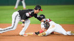 [OSEN=인천,박준형 기자] 1일 오후 인천SK행복드림구장에서 2020 KBO리그 SK 와이번스와 LG 트윈스의 경기가 진행됐다.2회말 1사 1루 SK 고종욱의 타석때 1루 주자 최지훈이 도루성공하고 있다. / soul1014@osen.co.kr