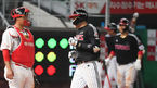 [OSEN=인천, 한용섭 기자]1일 인천 SK행복드림구장에서 열린 LG-SK전. SK의 7회말 공격에서 어수선한 심판 판정이 연이어 나왔다.SK는 1사 1,3루에서 한동민의 우전 적시타로 5-8로 추격했다. 최항은 1루수 땅볼로 아웃되며 2사 2,3루가