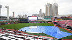 [OSEN=수원, 김성락 기자] 2일 오후 수원 KT위즈파크에서 ‘2020 신한은행 SOL KBO 리그’ KT 위즈와 롯데 자이언츠의 경기가 열린다.그라운드에 대형 방수포가 덮혀져 있다./ksl0919@osen.co.kr