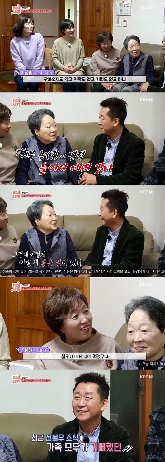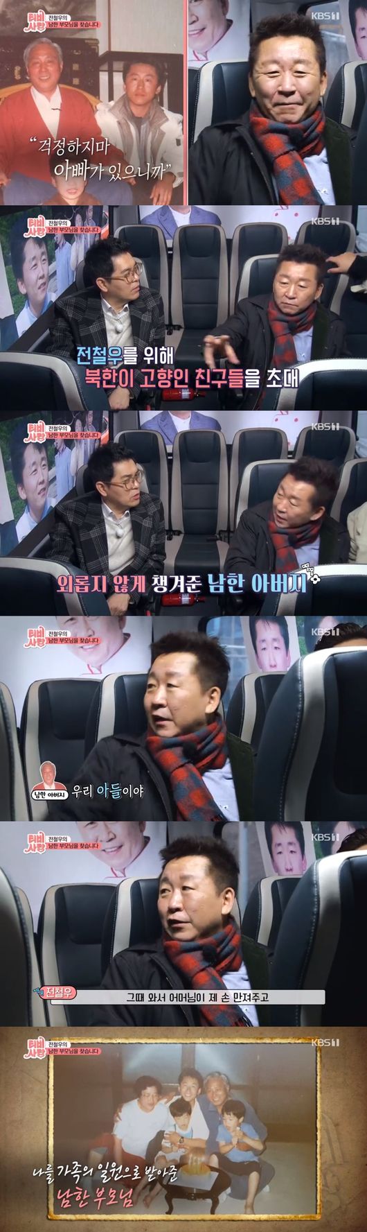 3일 방송된 KBS1TV 'TV는 사랑을 싣고'에서는 전철우가 젊은 시절 자신의 정착을 도와줬던 남한 가족들을 만나는 모습이 그려졌다.