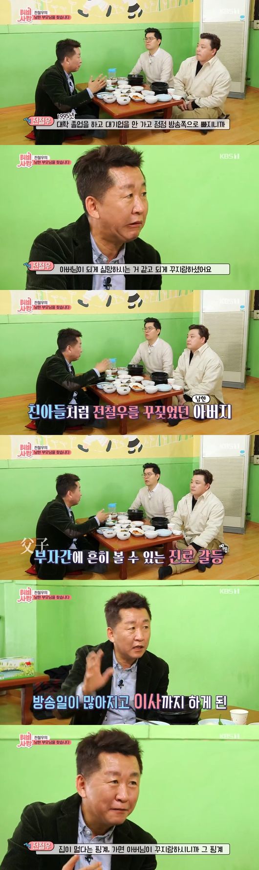 전철우는 "방송을 시작할 때 아버지는 내가 공부도 많이 했고 유학도 가길 원하셨다. 하지만 나는 방송을 하고 싶어서 그 부분을 이해할 수 없었다"라고 말했다.