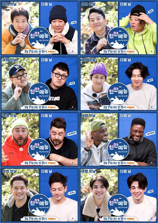 이 가운데 ‘친한 예능’ 팀원들의 여행 비포 앤 애프터가 공개돼 이목이 집중된다. ‘한국인팀’ 최수종-김준호-데프콘-이용진과 ‘외국인팀’ 샘 해밍턴-샘 오취리-브루노-로빈 데이아나의 여행 전후의 비주얼 간극이 보는 이들로 하여금 폭소를 금치 못하게 한다.