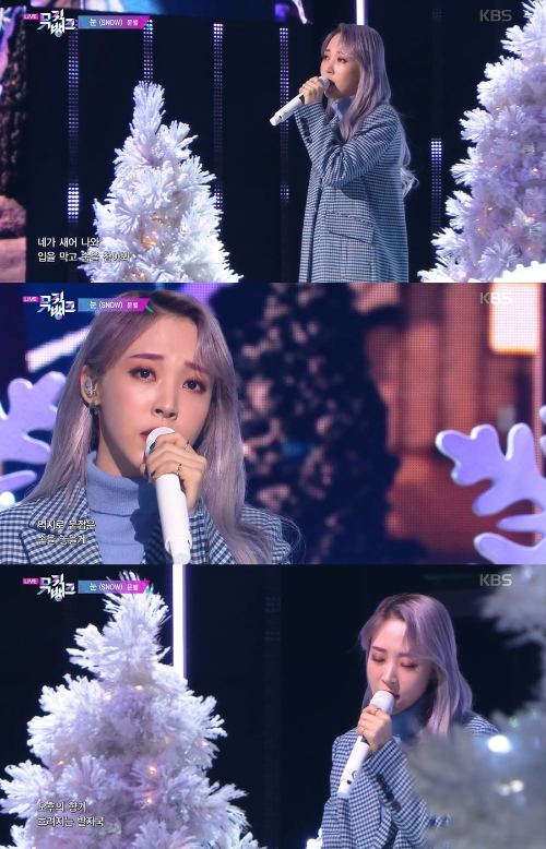 이날 문별은 깔끔하면서 세련된 의상으로 등장해 솔로곡 '눈' 무대를 꾸몄다. 마마무로 활동할 때와는 또 다른 감성적인 분위기로 랩은 물론 발라드까지 완벽 소화하며 눈길을 끌었다. 또, 잔잔한 듯 깊은 음색에 아련한 표정 연기가 더해지며 한층 따스한 매력을 안겼다.