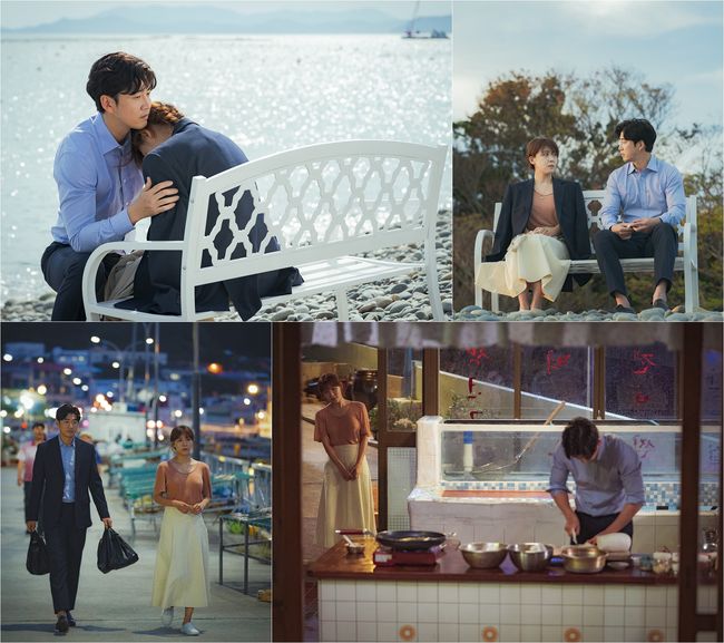 완도에서 포착된 이강과 문차영은 완연히 달라진 분위기를 보인다. 바다가 한눈에 보이는 해변 공원 벤치에서 잠든 문차영을 바라보던 이강은 자신의 어깨를 기꺼이 내준다. 그동안 선을 긋기도 하고 사소한 오해로 다가가지 못했던 이강이지만, 이번만큼은 문차영의 어깨를 조심스럽게 감싸고 있다. 담담하지만 깊게 일렁이는 이강의 표정이 설렘의 깊이를 증폭한다. 두 사람이 향한 곳은 여전히 그곳에 존재하고 있는 바다식당이다. 이강은 어린 시절 첫 만남에서 그랬던 것처럼 팔을 걷어붙이고 문차영을 위해 직접 요리를 한다. 그런 이강을 조심스럽게 바라보는 문차영의 표정에 설렘이 묻어나온다.