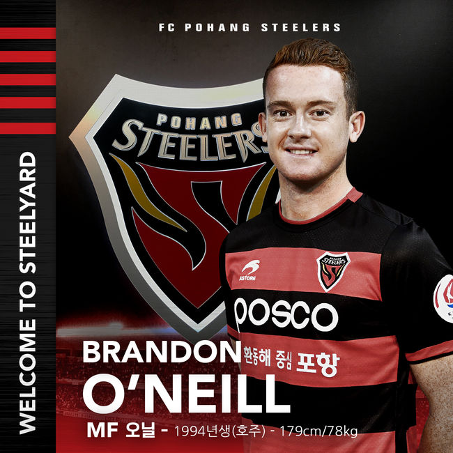포항스틸러스가 호주 미드필더 브랜던 오닐(Brandon Myles Darragh O’Neill)을 영입하며 아시아쿼터 자리를 채웠다. 등록명은 오닐이며 계약기간은 2년이다.