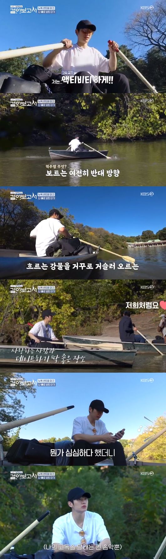 이날 정해인은 센트럴파크에서 홀로 보트타기에 도전했다. 정해인은 "이 곳이 '비긴 어게인' 촬영 장소이기도 하다"라며 직접 보트에 올랐다. 하지만 보트 노젓기를 힘들어 하며 마치 앙탈하는 듯한 노젓기를 선보여 주위를 웃음바다로 만들었다.