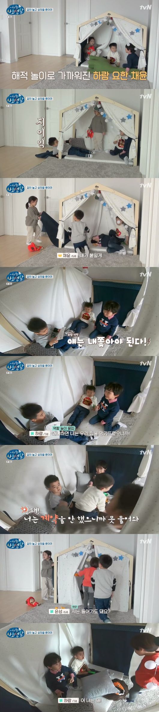 하람과 요한이 계속해서 텐트에서 놀고 있는 가운데 지석이 "그냥 나 때려"라고 하며 자신을 때리기 시작했다. 이에 평화주의자 아론이 "다시는 그렇게 하지마 그렇게 하는 거 재미없어"라고 했다. 한ㅁ편 하람과 요한은 지석을 끝까지 텐트에 못들어 가게 했지만, 은성의 "저는 들어가도 돼요?"라는 말에 한번에 텐트로 들어가 친밀감을 드러냈고, 분노한 지석은 울기 시작 됐다. /anndana@osen.co.kr