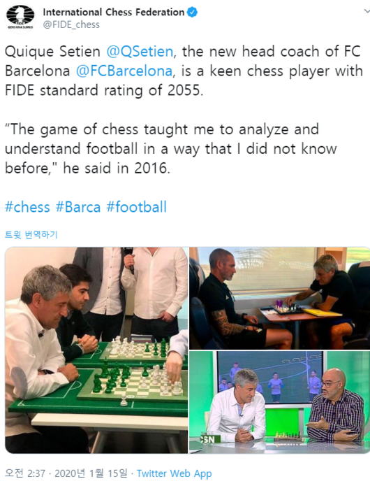 영국 '90 min'은 15일(한국시간) FC 바르셀로나의 신임 감독 키케 세티엔 감독을 소개하며 그의 이색 취미인 체스와 축구 철학에 대해 전했다.