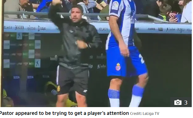 자신의 팀 선수를 인종 차별 제스처로 대하는 코치. 일본의 신성 구보 다케후사(마요르카)가 인종 차별의 희생양이 됐다.