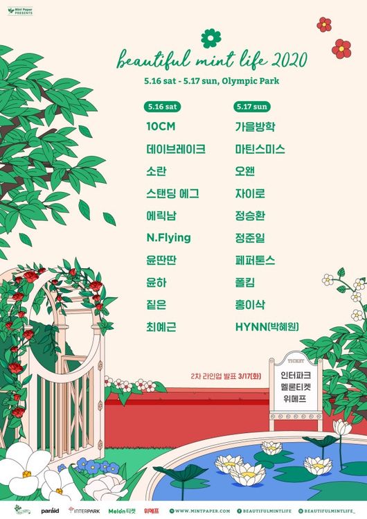 1차 라인업만으로 많은 기대를 모으고 있는 뷰티풀 민트 라이프 2020은 오는 5월 16일, 17일 양일간 서울 송파구 방이동 올림픽 공원에서 열린다. 오는 26일 온라인 예매사이트를 통해 공식 티켓 오픈을 앞두고 있으며, 2차 라인업은 내달 17일에 발표된다. /seon@osen.co.kr