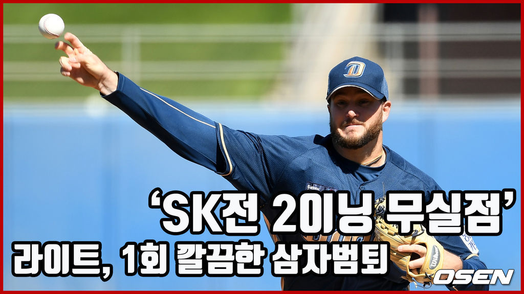 1회 삼자범퇴로 깔끔하게 막았다. 선두타자 노수광을 삼진 처리, 바깥쪽 낮은 코스의 꽉 찬 직구에 노수광은 꼼짝하지 못했다. 이어 정진기는 유격수 땅볼로 처리했다. 윤석민의 타구가 마운드 위로 뜨자, 라이트는 ‘아이 갓 잇’을 외치며 직접 잡았다.