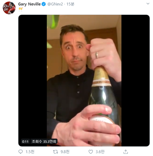 맨유의 전설 개리 네빌은 '숙적' 리버풀의 무패 우승이 좌절되자 자신의 SNS에 짧은 영상을 통해 기쁨을 표했다.