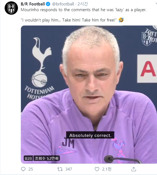 특유의 인터뷰 스킬과 유머 감각을 보여준 무리뉴 감독은 자신의 현역 시절과 빗대어 토트넘 선수들의 헌신에 고마움을 나타냈다. 토트넘 선수들은 주축 선수들이 부상으로 이탈한 상황서 고군분투하고 있다.