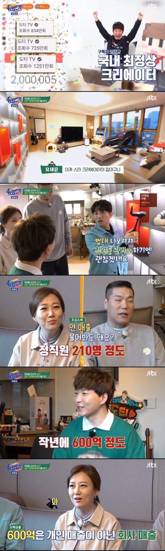 서장훈은 2018년 기억에 남는 스타로 BTS에 이은 2위를 차지했다고 전했다. 이어 엄청난 수익을 자랑한다고 말했다. 이에 장윤정은 매출을 조심히 물어봤고 도티는 "작년에 연매출 600억, 개인 매출 아니고 회사 매출이다"라고 전했다.
