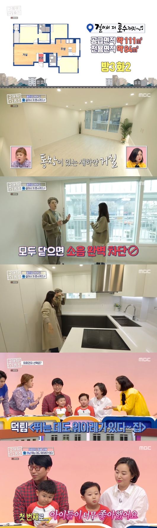 이후  광진구의 '걸어서 저 호수까지'를 선보였다. 통유리로 채광이 뛰어났다. 하지만 도로와 근접해 소음 문제가 있었다. 이에 붐은 "총 4중창으로 돼 있어 소음이 제로다"라고 말했다.  거실과 주방이 모두 화이트 톤으로 깔끔했고 냉장고 2대가 들어갈 공간도 확보돼 있었다.